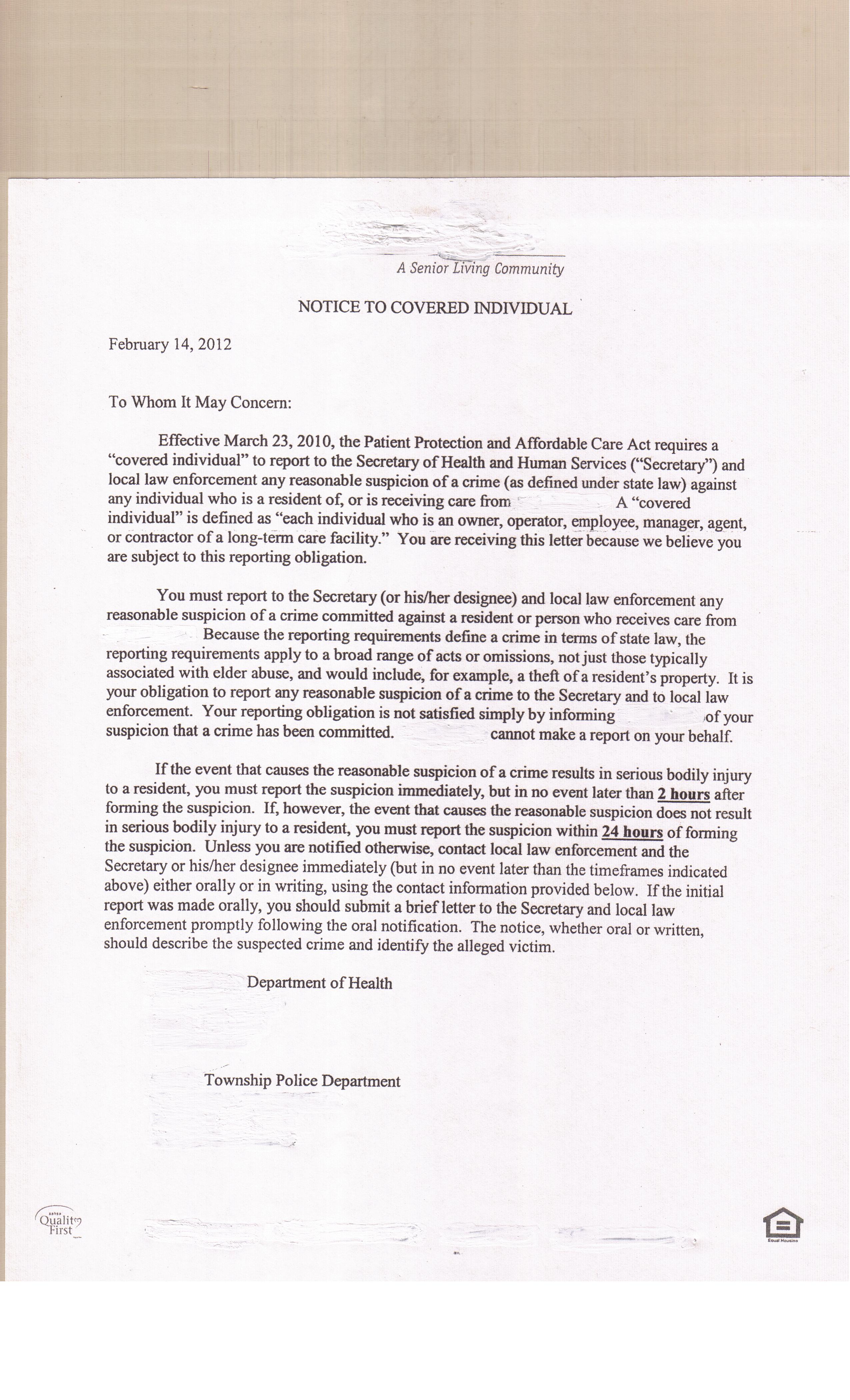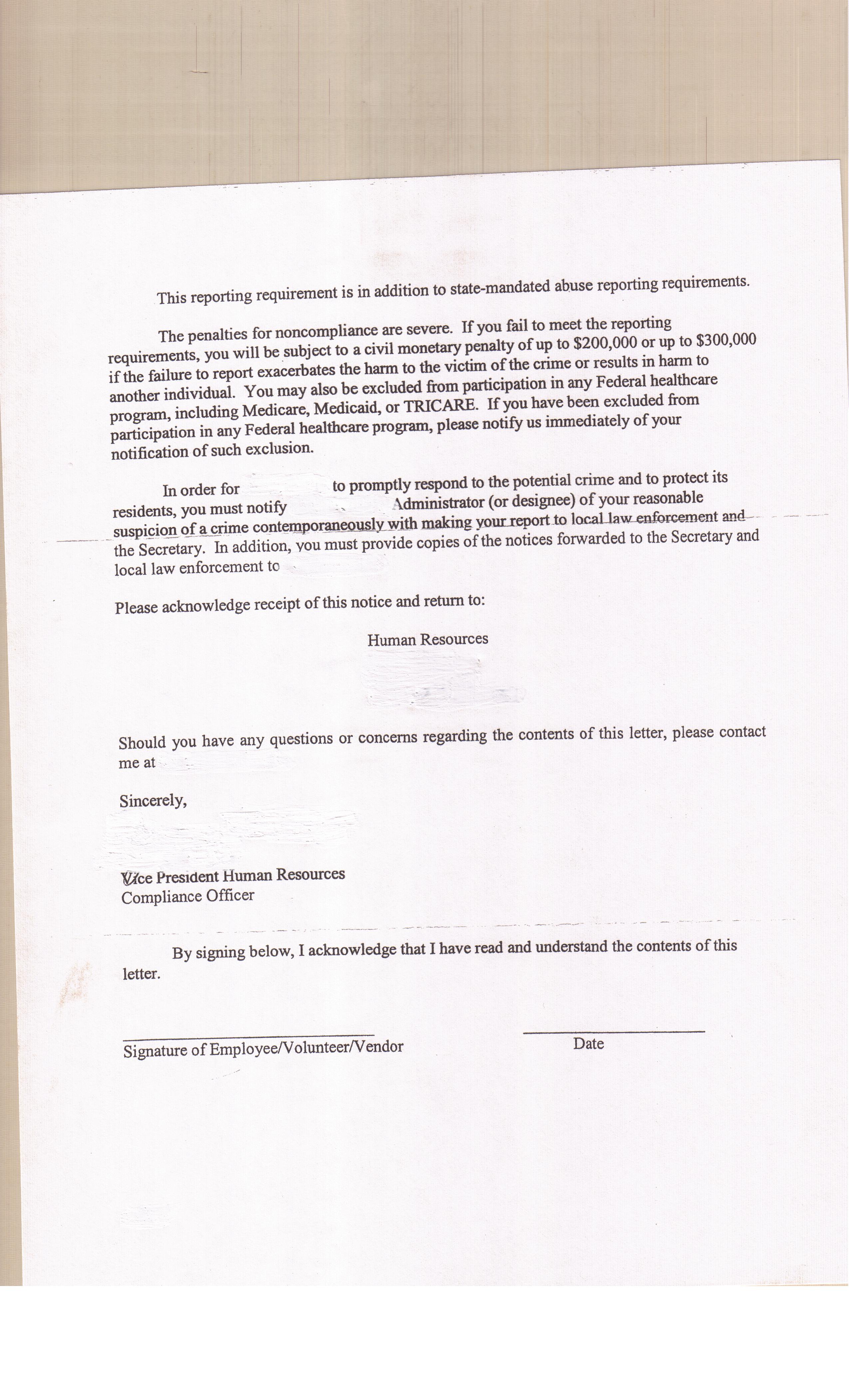 A not-so-friendly letter recently sent out at the behest of Madame Secretary of Health & Human Services, issued to anyone doing any sort of business, health-related or otherwise, at an East Coast senior citizen facility. All in the name of protecting senior citizens from any sort of harm or exploitation. Note the threats. Note the life-ruining penalties. Note the stringent requirements and precise time frames. Note the demand for extensive documentation, in triplicate or more to local authorities, state authorities, The Secretary Herself! All in the name of protecting senior citizens.