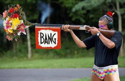 “President Barack Obama shoots clay targets on the range at Camp David, Md., Saturday, Aug. 4, 2012. (Official White House Photo by Pete Souza)”