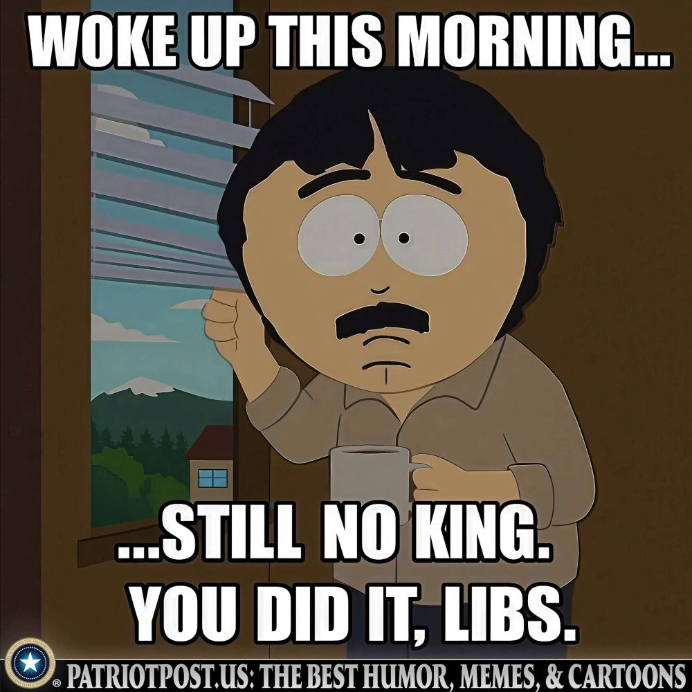UPDATE 10/22/25: “No Kings” allowed!!!!… except those Prog/Communist/Socialist dictator/monarchs of the Left’s choosing. Meaningless performance art largely from aging remnants of the “involved” Sixties. Actually, they’re out of power at the moment due to the infuriating practice of a legitimate election fully in accord with our constitutional republic’s laws. No wonder they hate us.