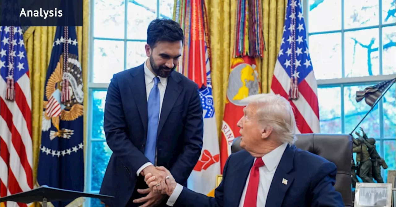 Keep your friends close, keep your enemies closer. Here is the Islamic Left’s darling in his first meeting with the force of nature that stands fully athwart his violent, dystopian vision of total urban/national/global control. Voluntarily caught in the big, bad MAGA lion’s den, note protective positioning of Little Red Jihad’s left hand. Second thoughts, Zohran?