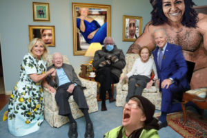 UPDATE 6/12/23: Watch the video of topless trannies flashing on the White House lawn today in a celebration of “Pride Month.” And hear the alleged POTUS slobber over the giddy celebrants as “the bravest and most inspiring people I’ve ever known.” We are witnessing yet another example of Obama’s “Transformation,” in this case crossing the borderlines between rational, civilized social behavior and lawless contempt. This blatant sort of subversion was evident in Biden himself and pointed out as far back as his notably ugly display opposite Paul Ryan in the 2012 VP debates. Discarding manners and normalizing rude & crude is one of many ways of undermining an entire society, and the powers that be have chosen the perfect person to lead down that road to perdition.